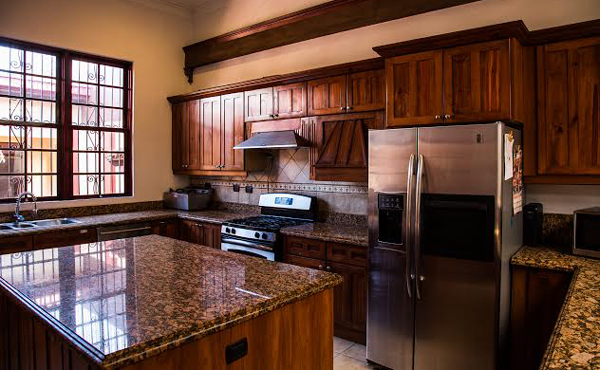 When you walk into the Costa Rica Mansion, you’ll be met with spacious room with high ceilings and high-quality furnishings and décor. There are plenty of windows on all sides of the home, bringing in a flood of natural lighting that brightens the rooms. The kitchen is fully equipped with upscale appliances, such as a refrigerator, stove, oven, and ice maker. The large center island is the perfect place to gather and prepare meals or share a snack between guests. There are also plenty of cabinets for storing food and dishes.