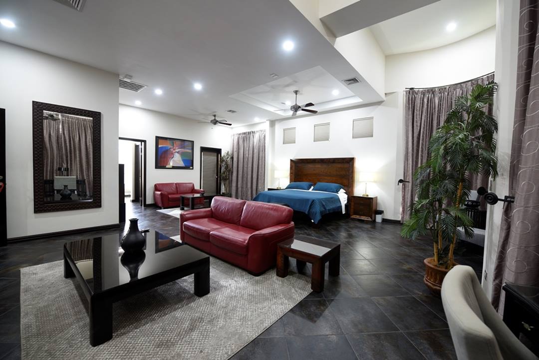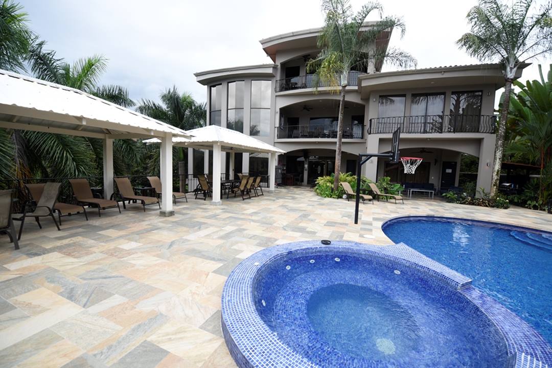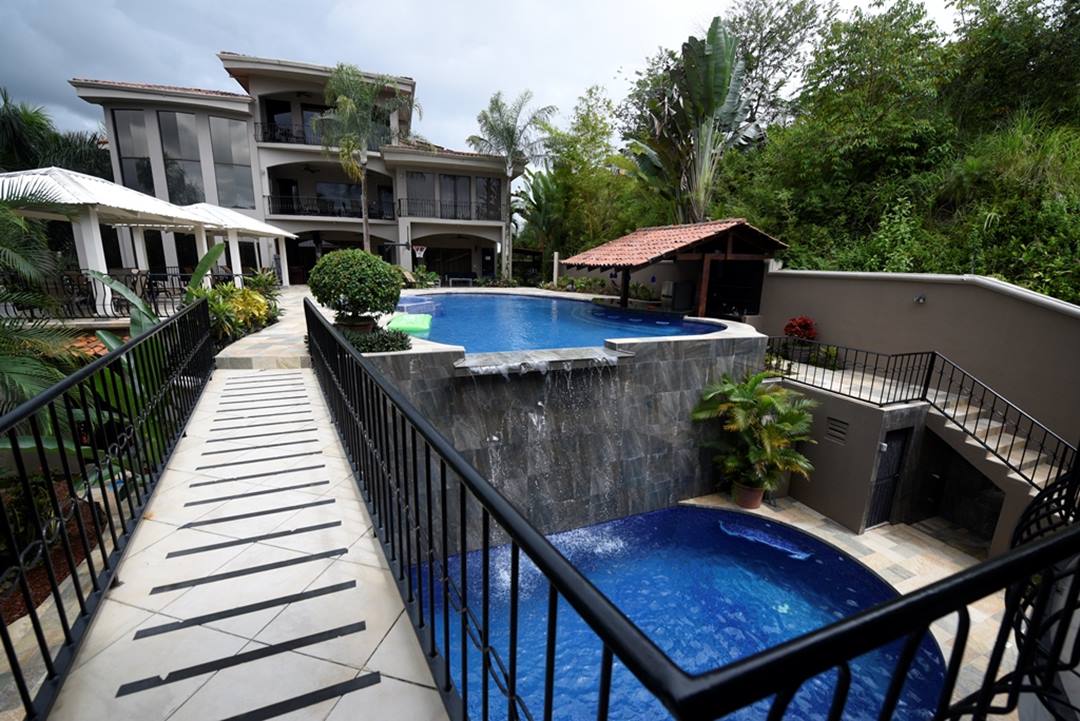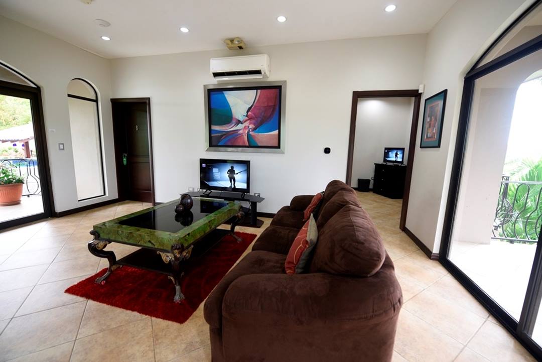 1300 sq ft Deluxe Master suite with a private living area, office area, and Jacuzzi in the large luxurious bathroom. Large game room with pool table, foosball table, shuffleboard table and flat screen TV. Large Gourmet Kitchen & Dining Table for 14 people. Elegant furnishings and fixtures throughout. Private Water Slide (Included 2 hours per day). Large Pool with Jacuzzi & swim-up bar, TV, BBQ. 1000 sq ft pool side deck with large rancho. Integrated Sound System throughout the house and pool area. 600 square foot Disco with Wet Bar, Lights, and Sound System. All Bedrooms, Disco, and Living Room have A/C. 2nd Pool with cascading waterfall. Professional Exercise Equipment Room. Observation deck with spectacular ocean, mountain and valley views. Beautifully landscaped grounds. 13 Programmable Safes [1 in each bedroom]. Daily Housekeeping. 24 Hour Security.