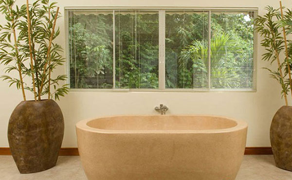 The master bedroom is the perfect place to relax at the end of the day. This space has dual shower heads, a stone tub, a king-size bed, and a 50” plasma TV. Three of the other bedrooms also contain king-size beds and 50” plasma TVs. The last bedroom has two full size beds in addition to a 50” plasma TV. Other perks of the Forest Villa is the outdoor dining area off the main dining room, a dinner table for 10, and access to a gourmet chef with custom menus available upon request. Air conditioning and free wireless high speed internet is also available.