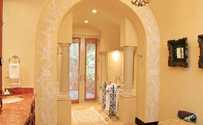 Guests of the Sea Shell Villa have access to three bedrooms, as well as three and one-half baths. There is also a private guest house to accommodate extra group members. The property has many excellent features and amenities, from the ample terrace with marina and ocean views to the lush landscaping that surrounds the Jacuzzi tub and private infinity edge swimming pool. For the guests who reside in the detached guest house, a small kitchen, fridge, and private access is available.