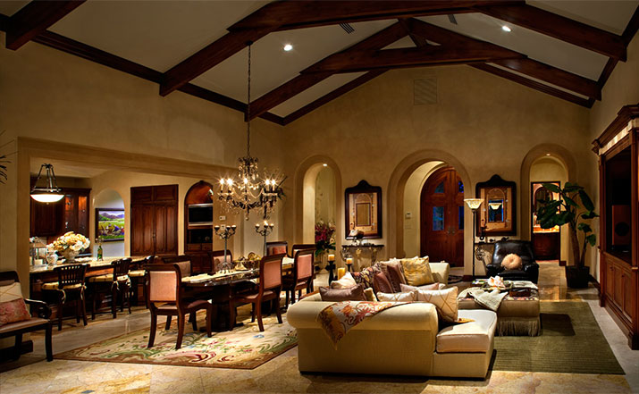 Accommodate small to large groups with plenty of room to spare. The three bedroom home features three and one-half baths, in addition to a private guest house. Each of the three bedrooms is a master suite with large flat screen plasma TVs. Each bedroom also boasts its own private bathroom. The spacious living and dining rooms also contain a large flat screen TV for guests to enjoy during their stay.